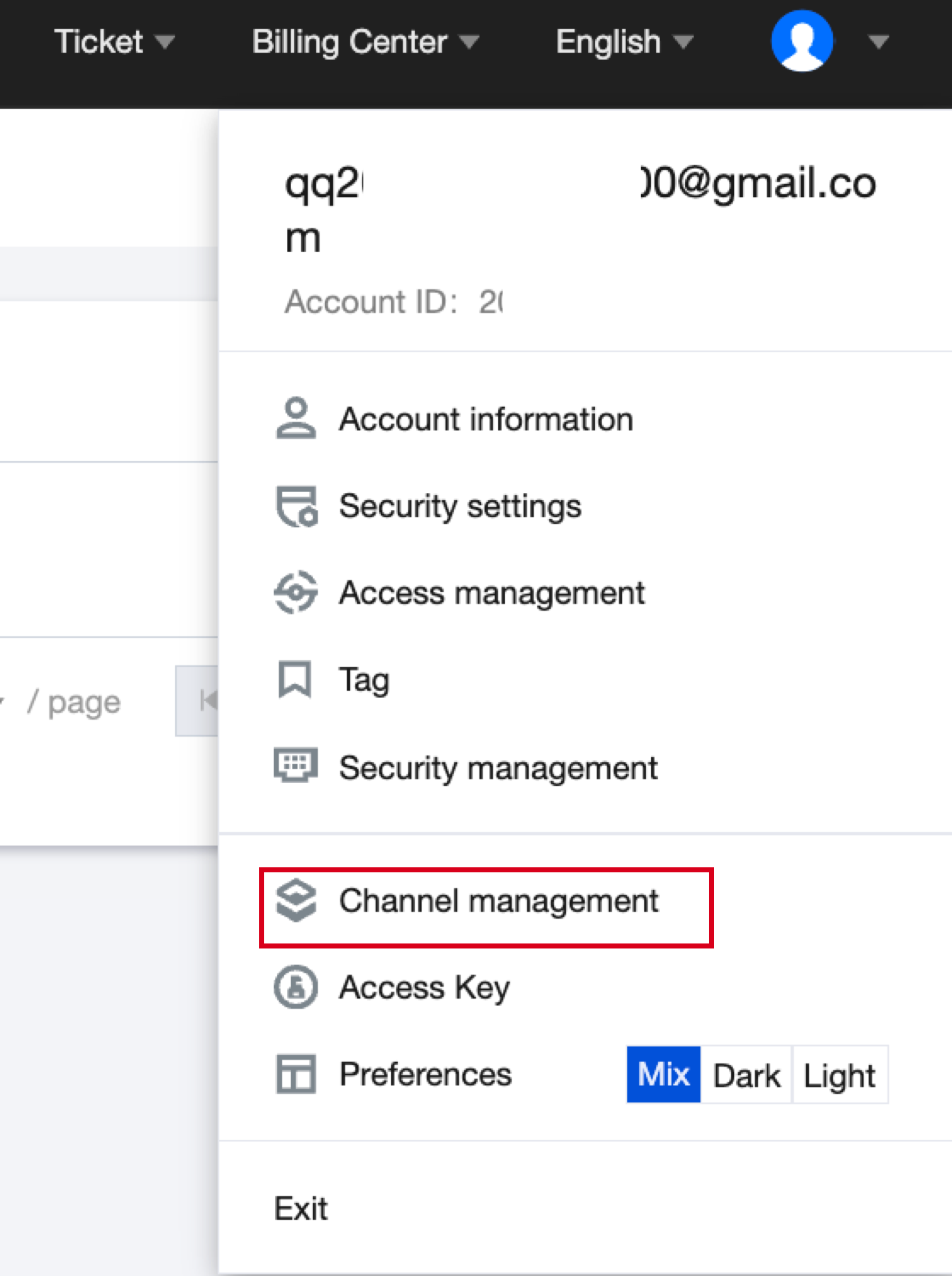 If you are a distributor or reseller, hover over the account name and click Channel Management to enter the Partner Center console.
