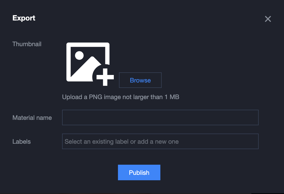 Select or enter labels for your material. Labels help you categorize your materials and can be used as filter conditions. For example, you can add labels according to a material’s project type (Web project, Mini Program project).