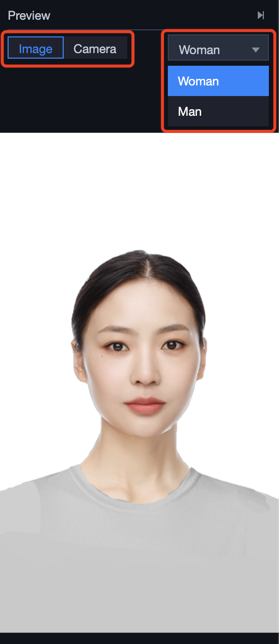 The preview area shows the effects you configure in real time. You can preview the effects either on the built-in models (man and woman) or on images captured by your camera.