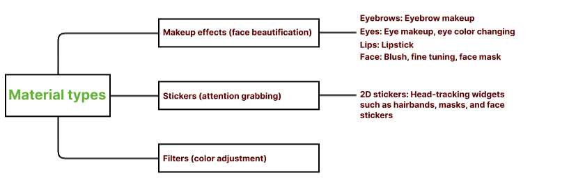 A typical effect material usually includes makeup effects, stickers, and filters.