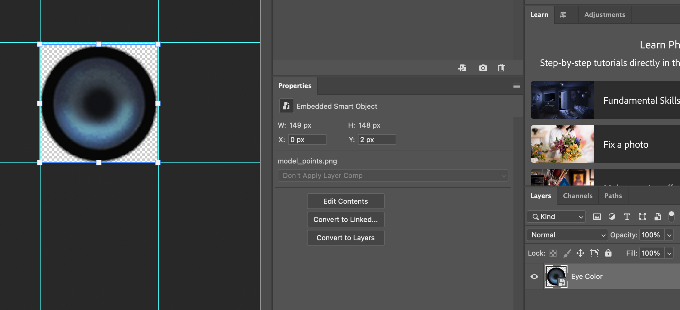 For eye color, use an image with an aspect ratio of 1:1 (150 x 150 is recommended).