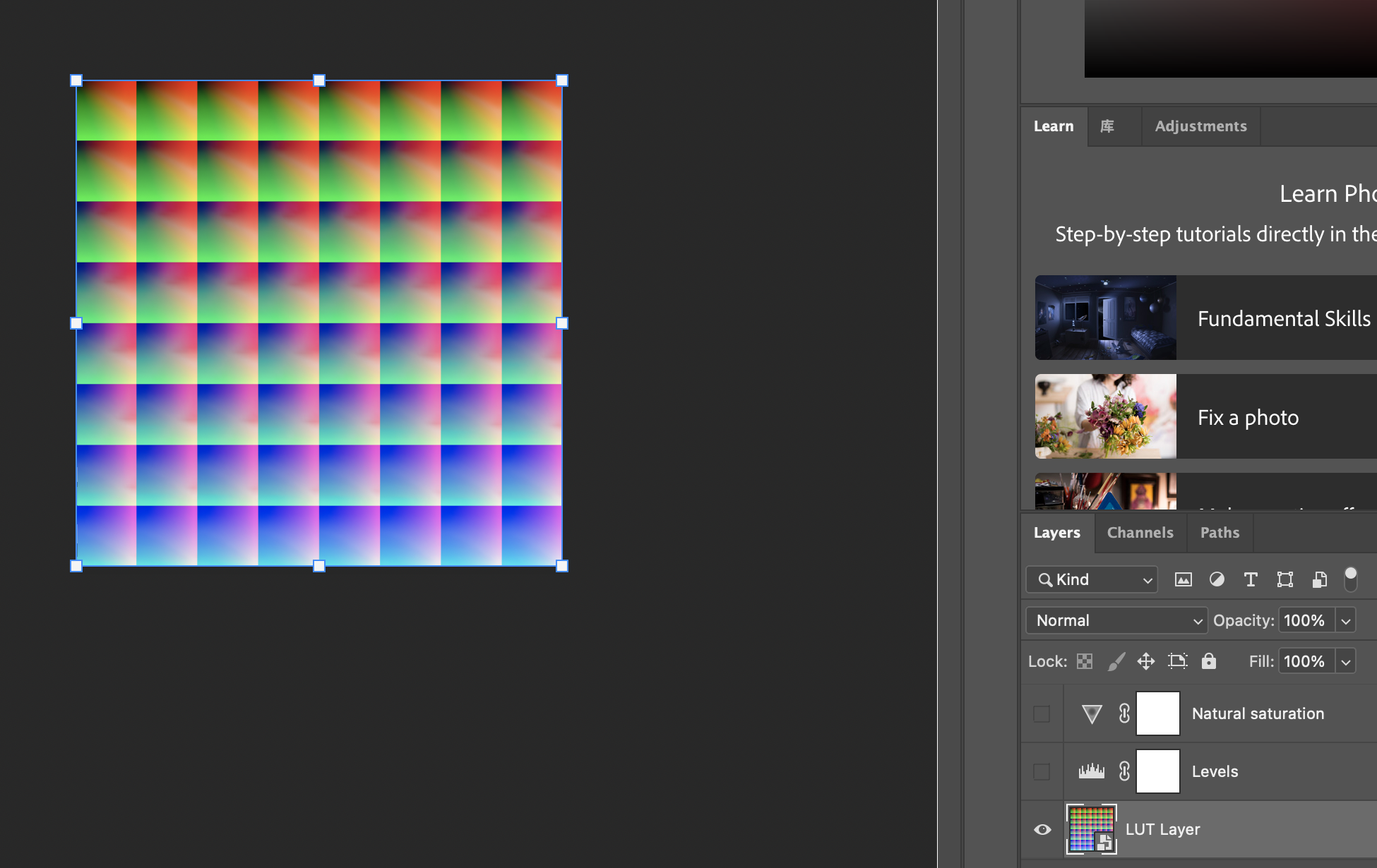 For filters, use the standard color card in the template. You can adjust the parameters of your filter using photo editing mobile apps such as VSCO, export the color card, and convert it to a standard LUT file in PNG format in your computer. If you are familiar with color adjustments, you can also make your filter directly in Photoshop. In either case, the final output file should be a 512 x 512 LUT file.