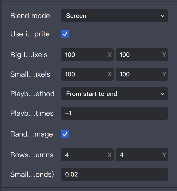 Enable Random Initial Frame: If enabled, each particle randomly selects its initial frame. If disabled, all particles start from the top-left frame.