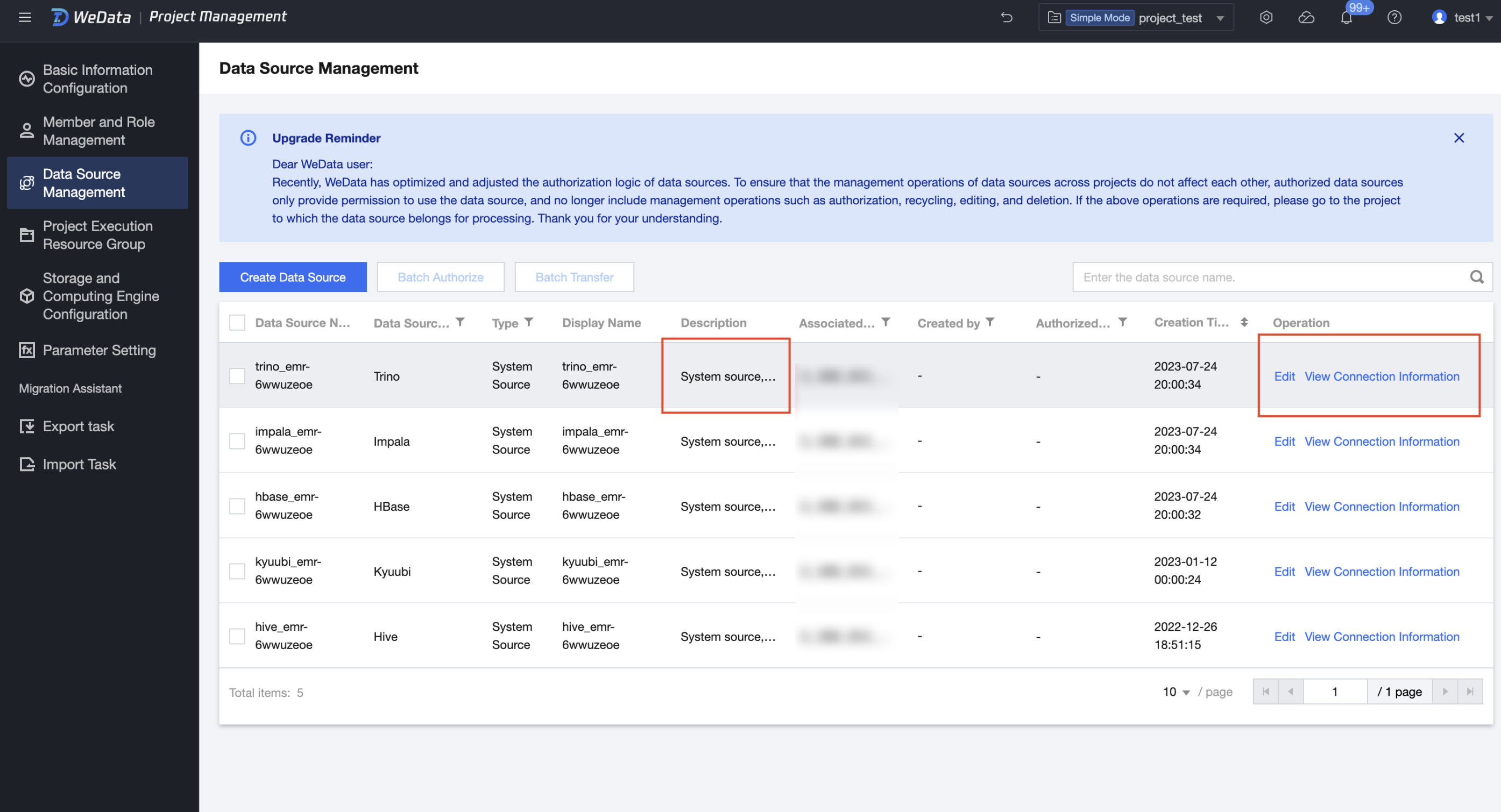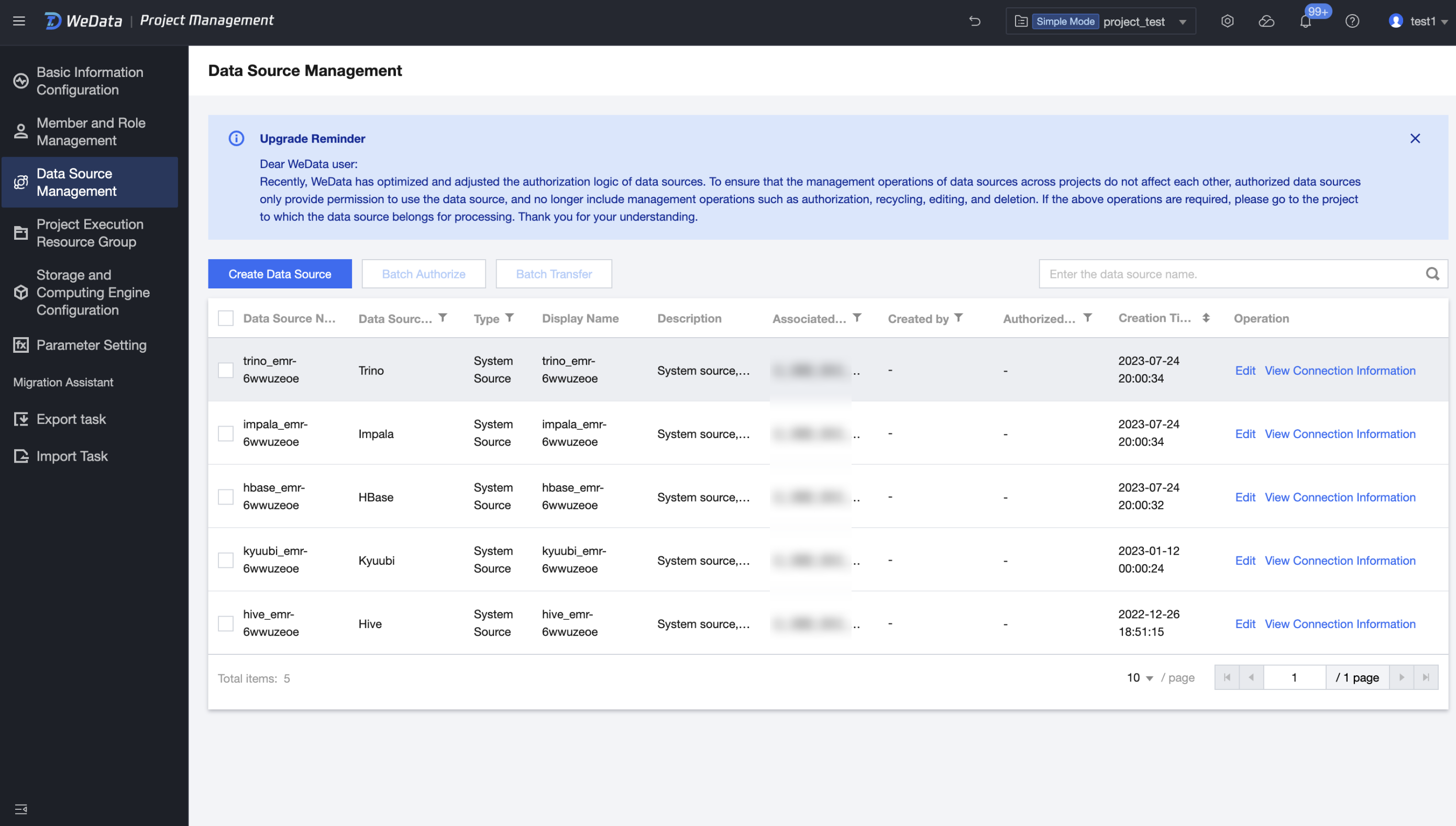 Data Source Permission | "Project Shared" means all members of the current data source project can use it, and "Individual and Administrator Only" means the data source is only available to the creator and project administrators. |