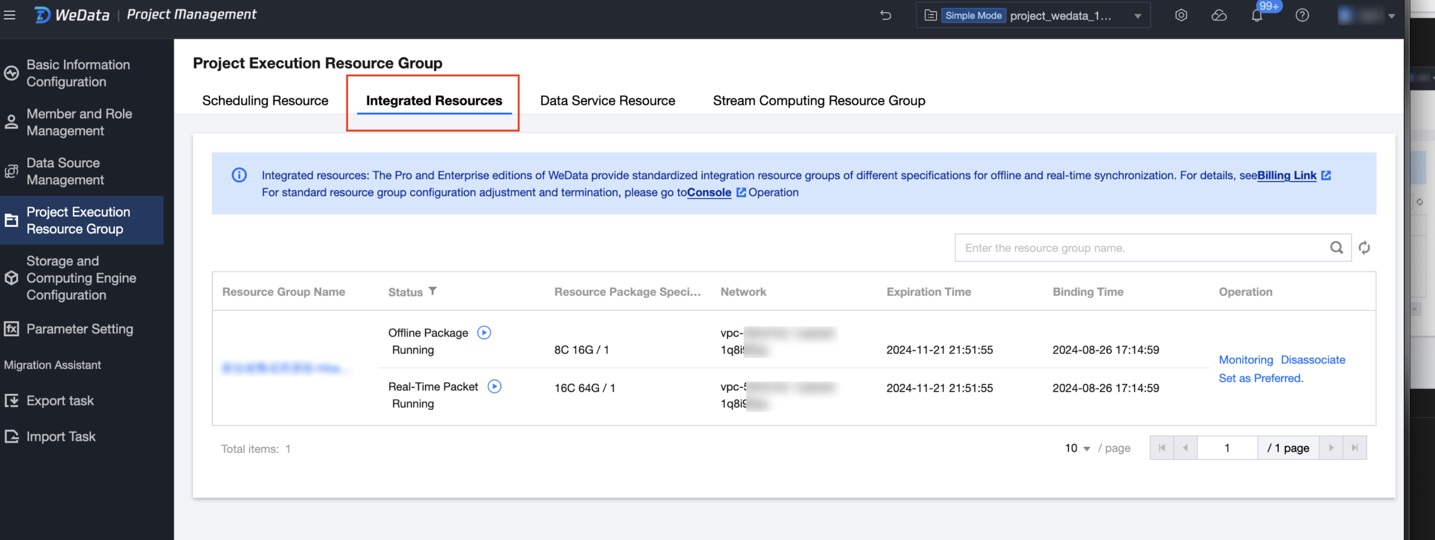 Professional Edition and Enterprise Edition WeData provide different specifications for standardized Integration Resource Groups for offline and real-time synchronization. For Configuration Adjustment, Termination, etc. of Standard Resource Groups, please go to the Console for operation. Monitoring