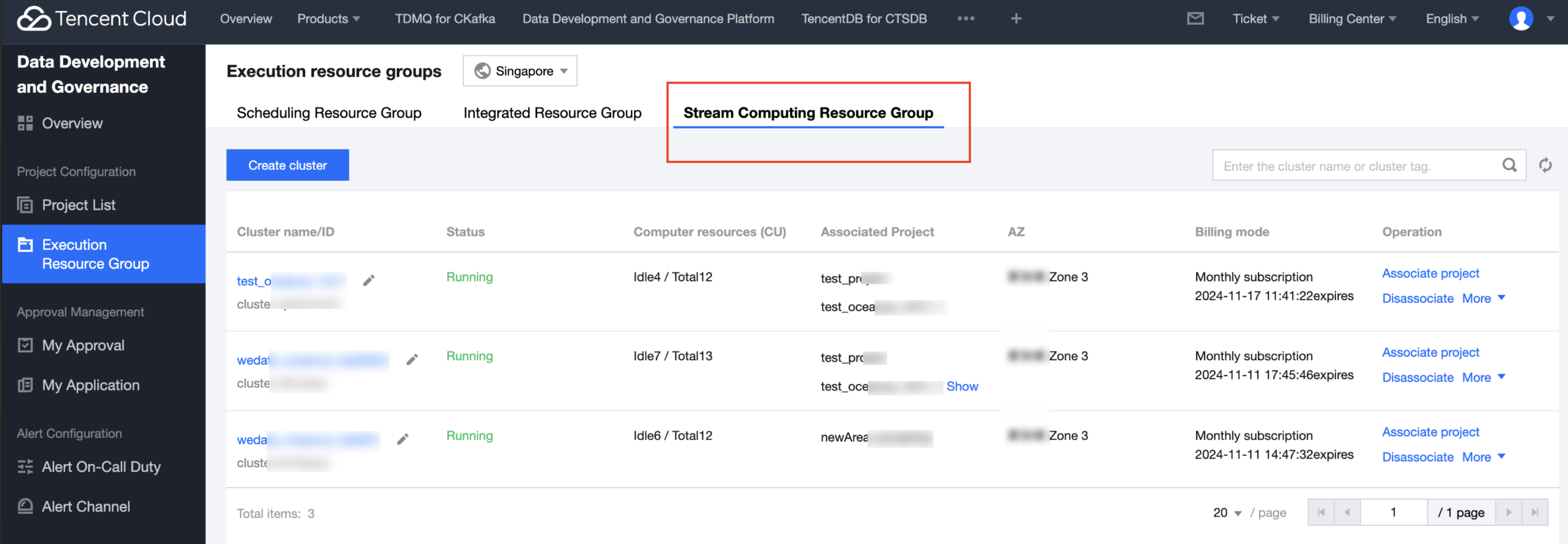 2. In the upper left corner of the page, select the region, then click Create Cluster to create a dedicated cluster.