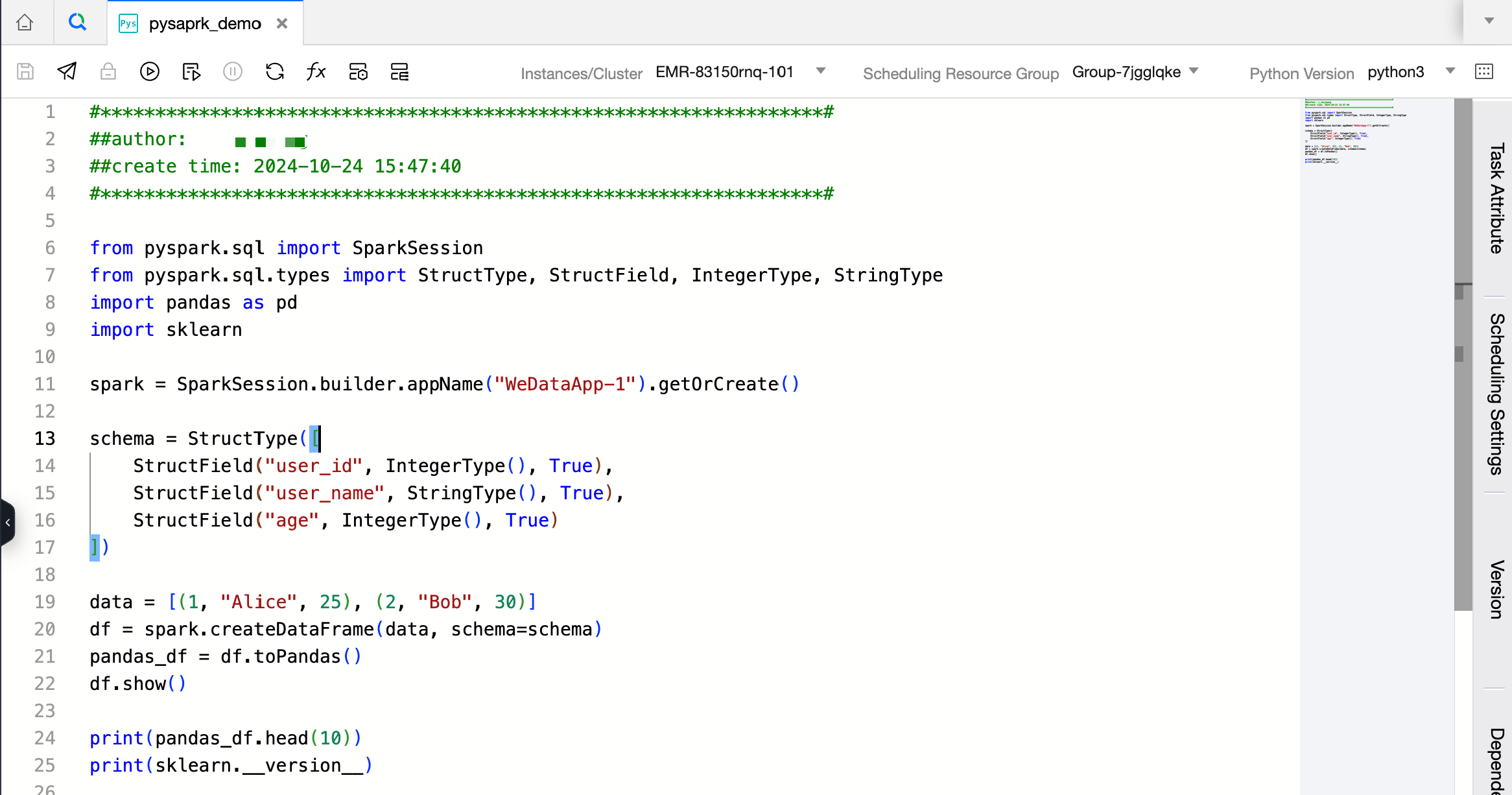 Use the Python Environment Of the Scheduling Resource Group In a PySpark Task