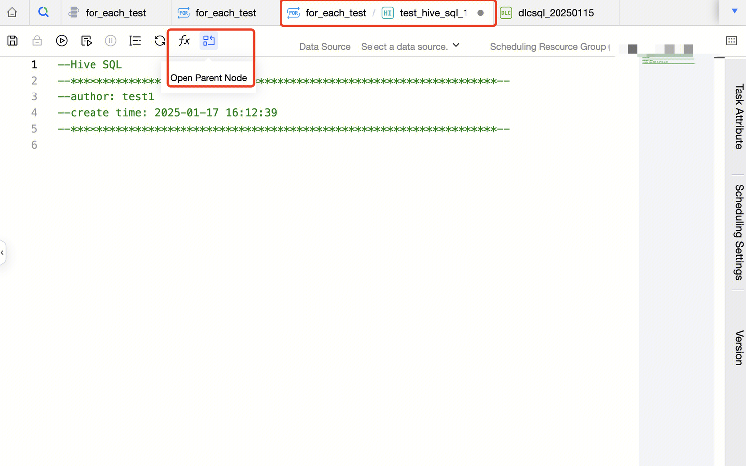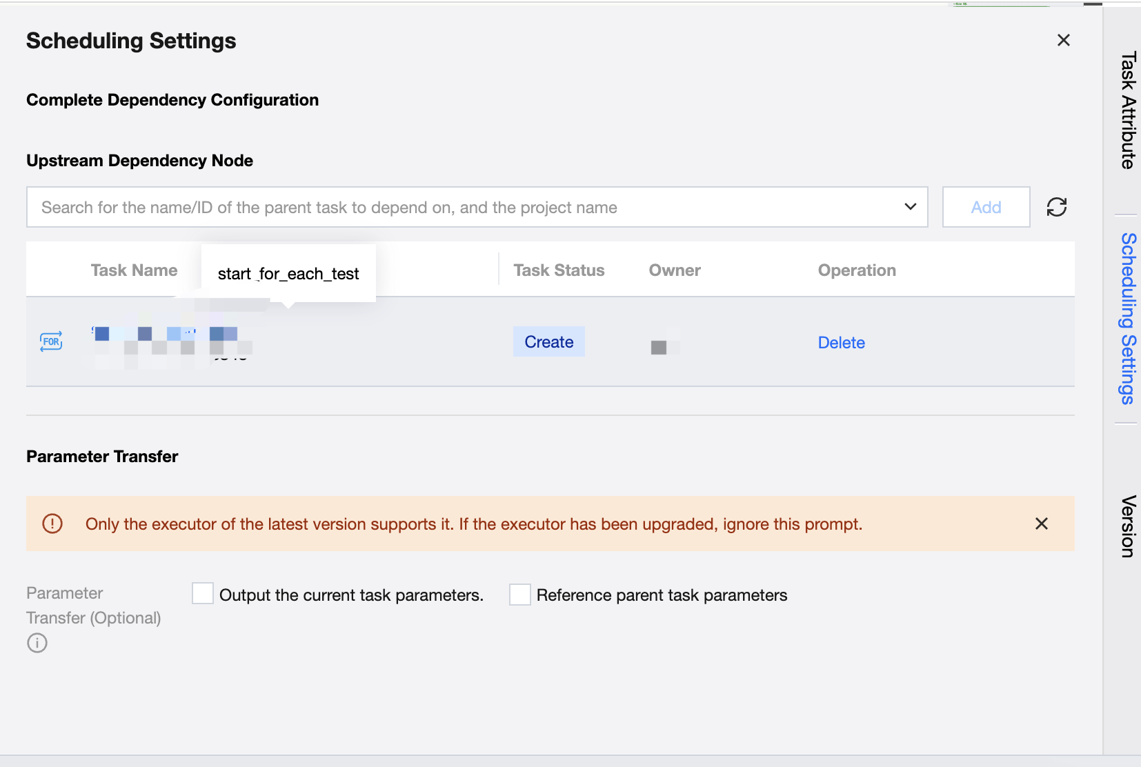 Currently, viewing the configuration of For-each node tasks is not supported in version management; only viewing task attribute information is supported.