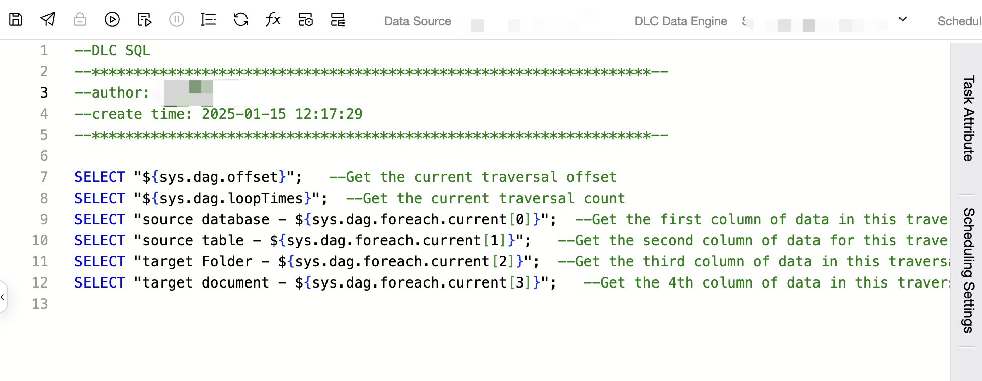 ${sys.dag.offset} | The current offset, that is, starting from 0, obtain which loop the current loop corresponds to. | First loop: 0 Second loop: 1 Third loop: 2 |
