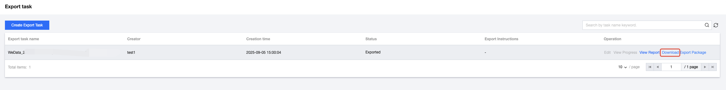 6. After the export is complete, return to the list page and click "download export package" to save it to local.