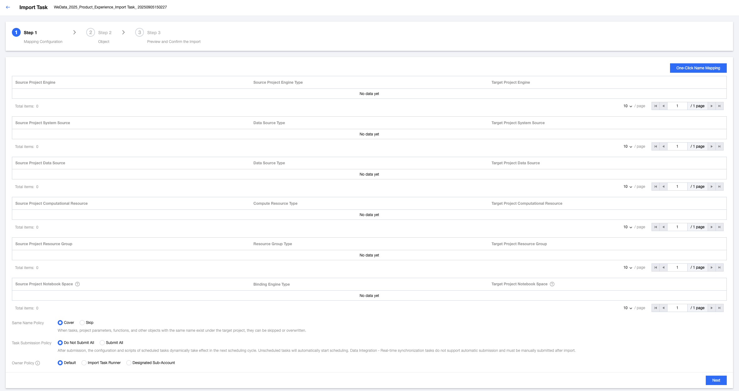 Do not submit all: After importing a task, it is set to submit none by default, and the user must manually submit it.