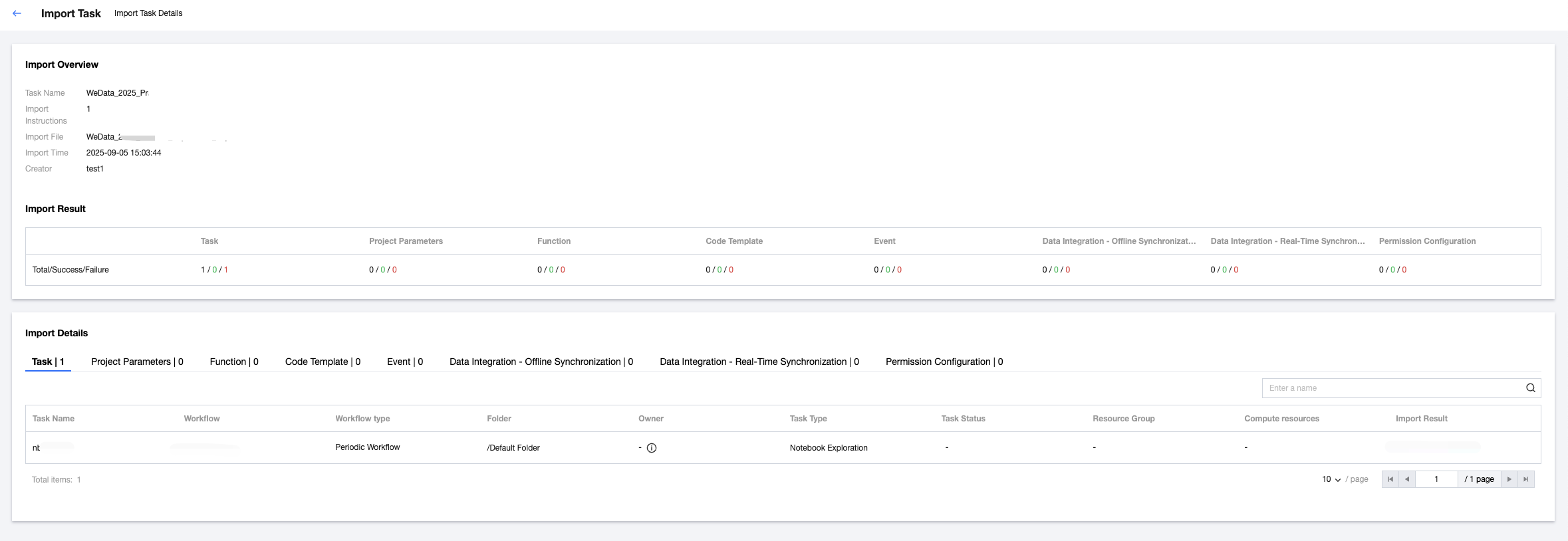 1. Select Create Import Task in the top-left corner, upload the exported compression package in the pop-up dialog box, and click File Verification to validate the format and content of the import file. After successful verification, fill in the import instructions and click Start Importing.