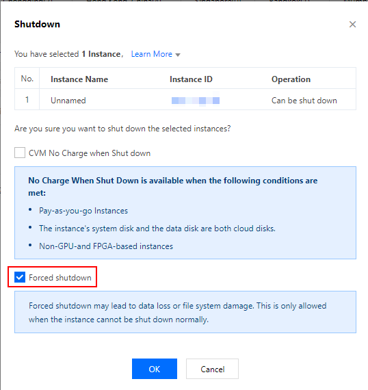 Mematikan/memulai ulang paksa yang disediakan oleh Tencent Cloud dapat digunakan jika Anda gagal mematikan atau memulai ulang CVM setelah beberapa kali mencoba. Fitur ini memungkinkan Anda untuk memaksa mematikan atau memulai ulang CVM, yang dapat menyebabkan kehilangan data atau merusak sistem file.