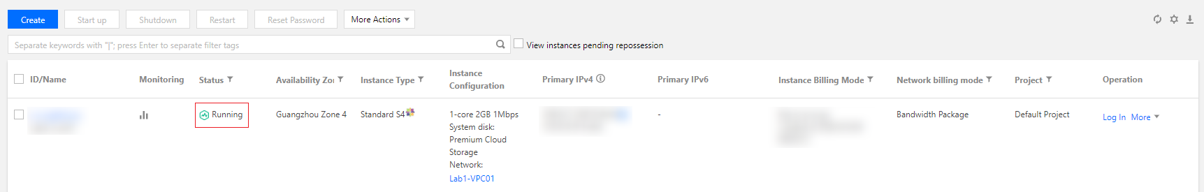 1. Login ke Konsol CVM dan verifikasi apakah status berjalan instans CVM normal pada halaman manajemen instans, seperti yang ditunjukkan di bawah ini: