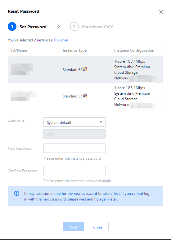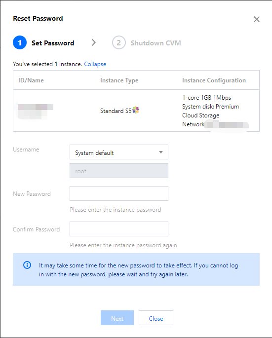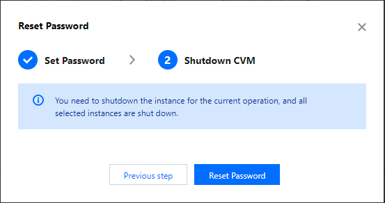 Jika lupa kata sandi login instans CVM, harap atur ulang kata sandi tersebut di konsol.