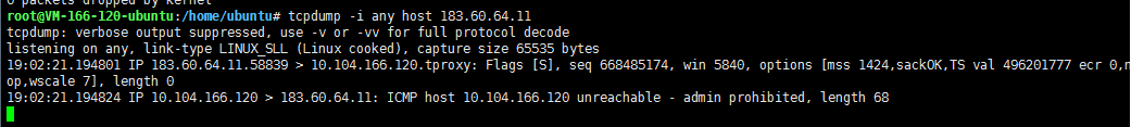 Jika ya tetapi CVM tidak menanggapi, masalah ini mungkin disebabkan oleh kebijakan iptables dari CVM. Seperti yang ditunjukkan pada gambar berikut, CVM tidak mengembalikan paket TCP ke 64.11 setelah koneksi Telnet dibuat.