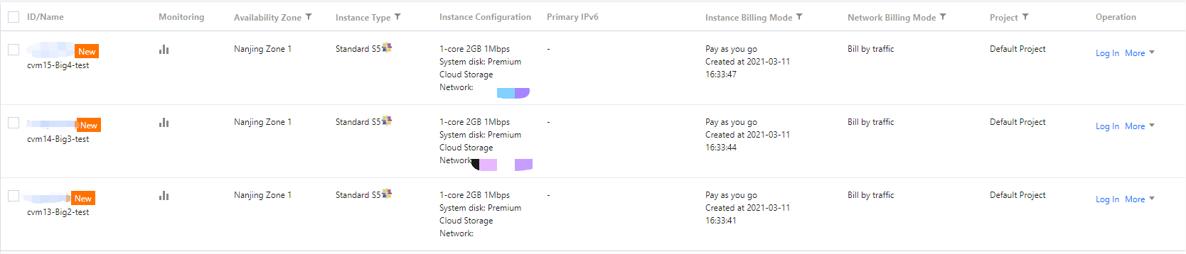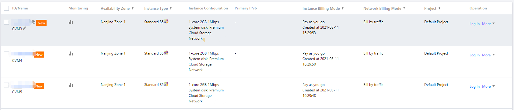 3. Kembali ke Konsol CVM untuk melihat instans yang baru dibeli. Anda dapat melihat bahwa instans yang dibeli secara batch ini diberi nama dengan awalan yang sama dan nomor berakhiran menaik mulai dari 3.