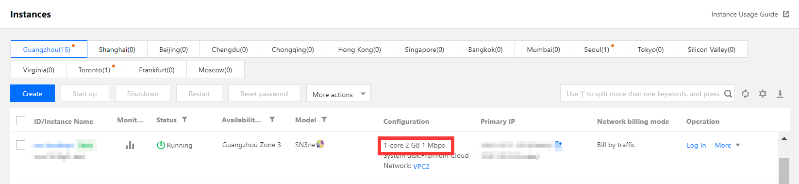 1. Pada halaman pengelolaan instans di konsol CVM, klik ID atau nama instans untuk login guna membuka halaman detail instans.