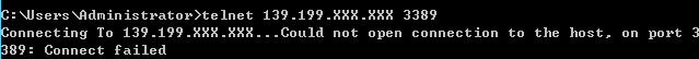Misalnya, telnet 139.199.xxx.xxx 3389, seperti yang ditunjukkan pada gambar berikut: