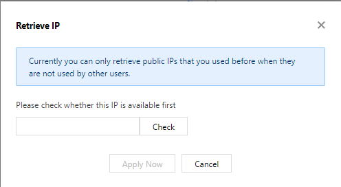 4. Di jendela pop-up Retrieve IP (Ambil IP), masukkan alamat IP publik dan klik Check (Periksa) untuk menanyakan apakah alamat IP dapat diambil, seperti yang ditunjukkan pada gambar berikut.