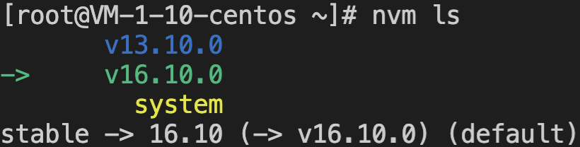 7. Jalankan perintah berikut untuk melihat semua versi Node.js yang terinstal.