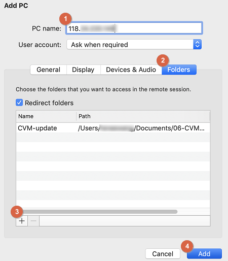 2. Di jendela pop-up Add Desktop (Tambahkan Desktop), ikuti langkah-langkah di bawah ini untuk memilih folder yang akan diunggah dan membuat koneksi dengan CVM Windows Anda.