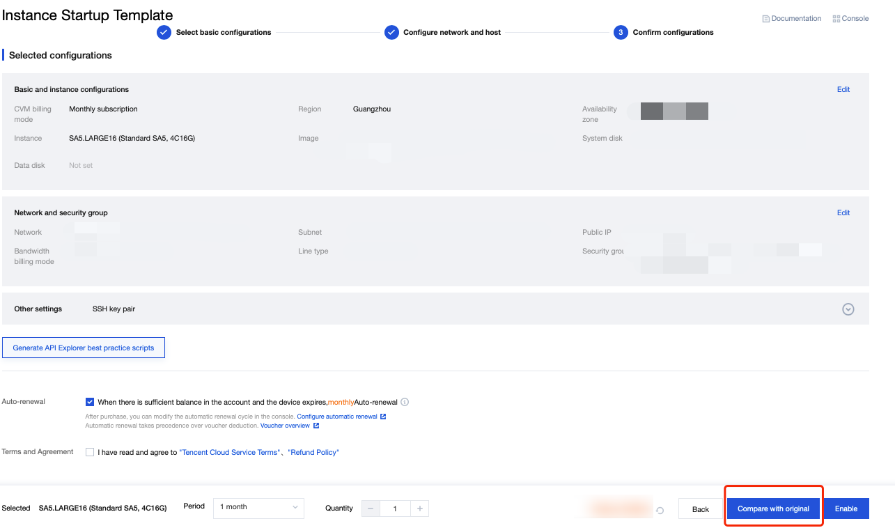 3. Pada langkah Konfirmasi informasi konfigurasi , baca dan centang Setuju dengan "Perjanjian Layanan Tencent Cloud" dan "Petunjuk Pembelian" .