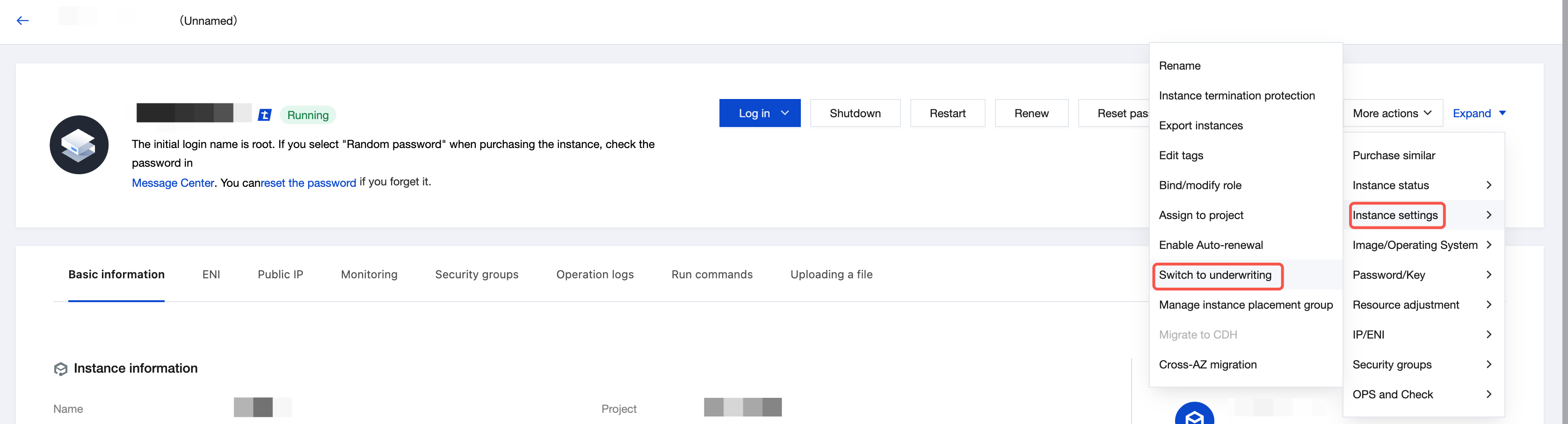 Tampilan tab: Di halaman instance, pilih Operasi Lainnya > Pengaturan Instance > Konversi Berlangganan Tahunan/Bulanan ke Komitmen Konsumsi. Seperti yang ditunjukkan di bawah ini: