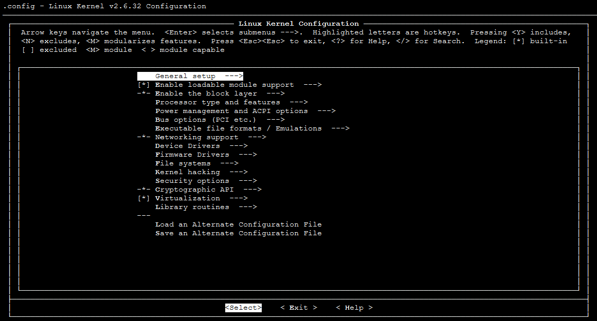 Antarmuka “Konfigurasi vX.X.XX Kernel Linux”: