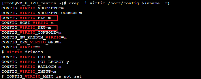 Kernel masih tidak berisi informasi konfigurasi yang terkait dengan driver virtio setelah Anda selesai memeriksanya.