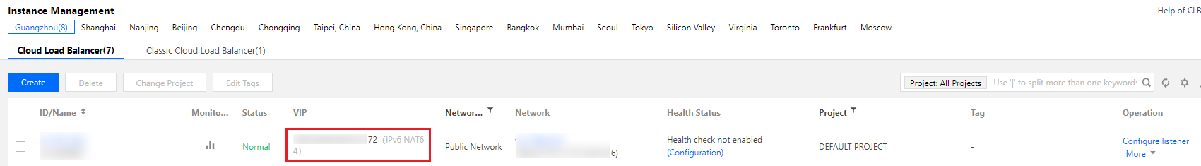CLB IPv6 NAT64 hanya bisa dibuat di tiga wilayah:Beijing, Shanghai, dan Guangzhou.