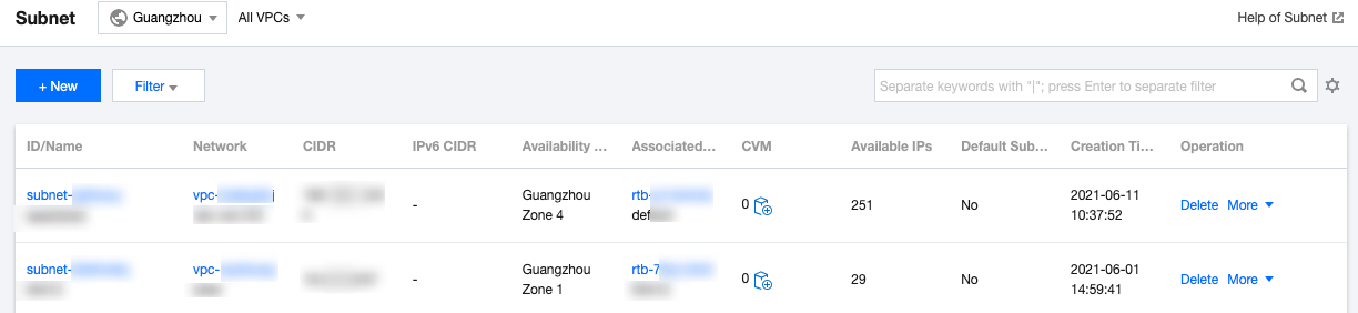 Setelah membuat subnet, Anda dapat men-deploy sumber informasi termasuk CVM dan CLB di dalamnya.