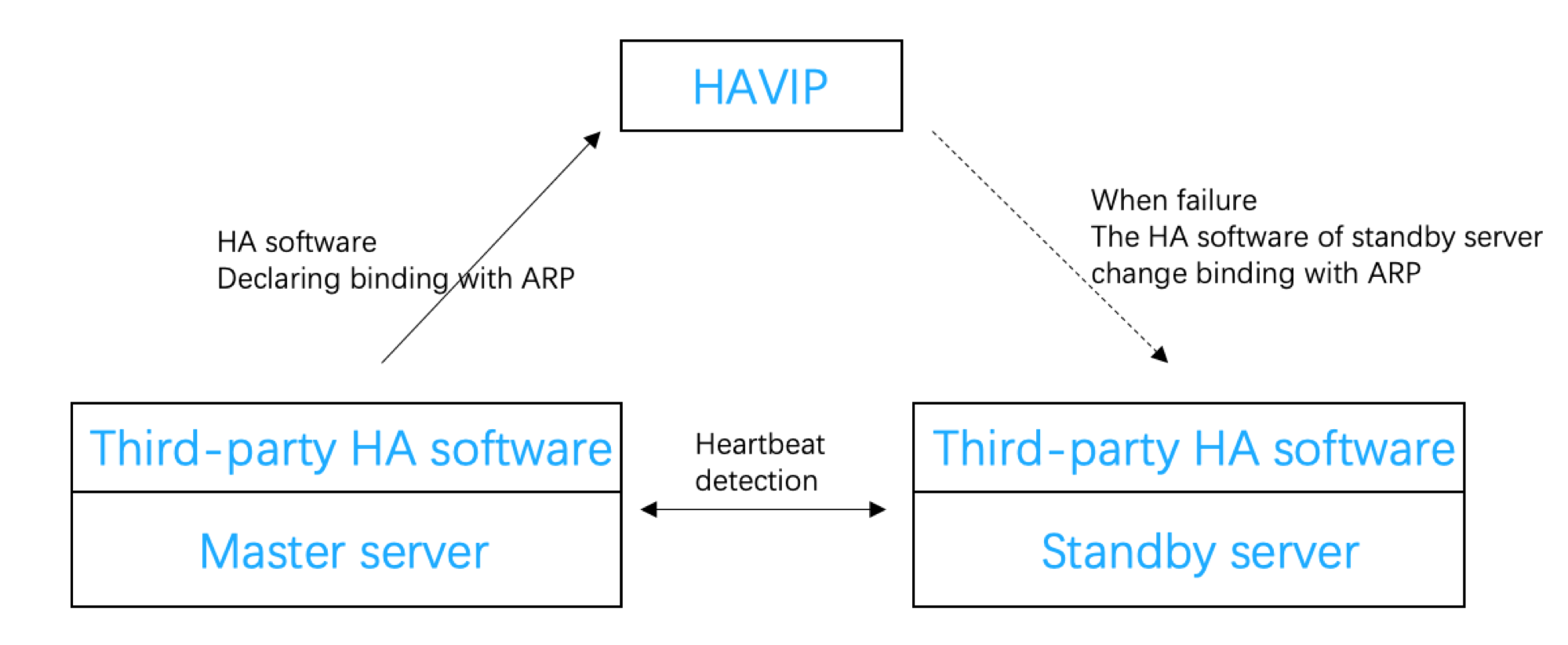 HAVIP dirancang untuk digunakan bersama dengan perangkat lunak HA pihak ketiga yang harus dikonfigurasi dalam perangkat lunak HA pihak ketiga. HAVIP hanya merupakan objek operasi dan alamat IP pribadi yang dapat diikatkan melalui pengumuman. Dengan demikian, pengikatan dan pemutusan ikatan HAVIP ke CVM tidak dilakukan di konsol Tencent Cloud. Sebagai gantinya, Anda hanya perlu menentukan HAVIP sebagai alamat IP virtual floating (VIP) di perangkat lunak HA pihak ketiga yang kemudian menentukan ENI untuk dikaitkan ke HAVIP melalui ARP. Berikut ini adalah cara mengikat atau memutuskan ikatan HAVIP: