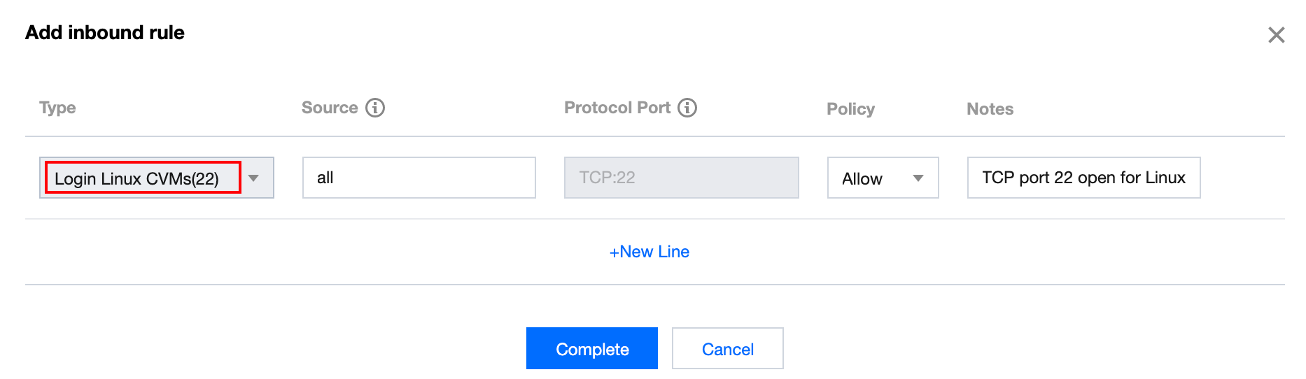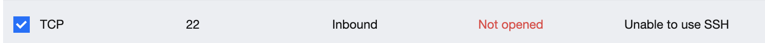 Asumsikan bahwa Anda perlu membuka port Tidak dibuka, misalnya TCP:22,