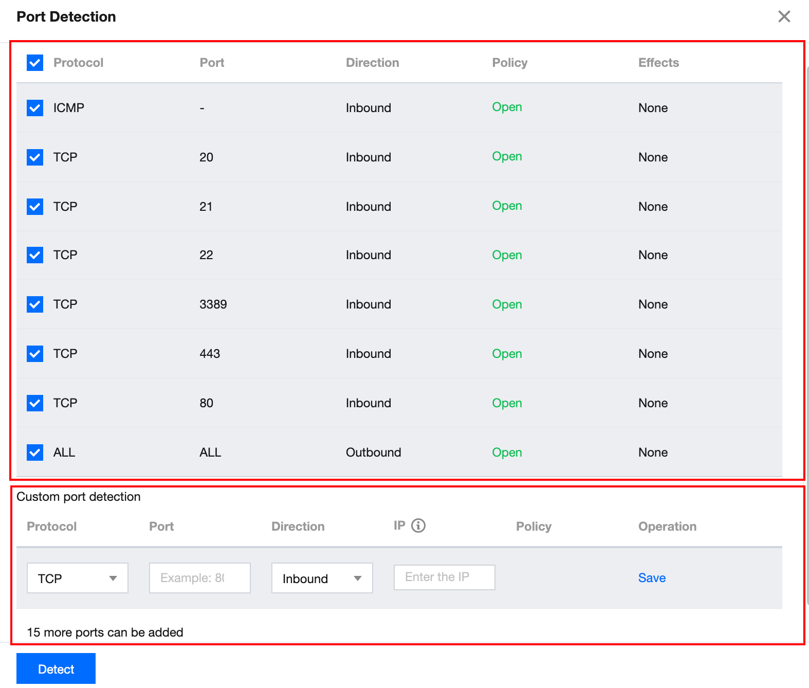 Fitur ini mendukung deteksi aksesibilitas port umum dan port kustom. Lihat di bawah ini untuk port umum.