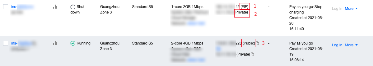 | Melepaskan IP | Jika Anda tidak memerlukan IP publik lagi, Anda dapat masuk ke konsol CVM, cari IP publik, dan di kolom Operasi, pilih Selengkapnya > IP/ENI > Kembalikan IP Publik untuk mengembalikannya. | Anda dapat melepaskan EIP di konsol EIP. |