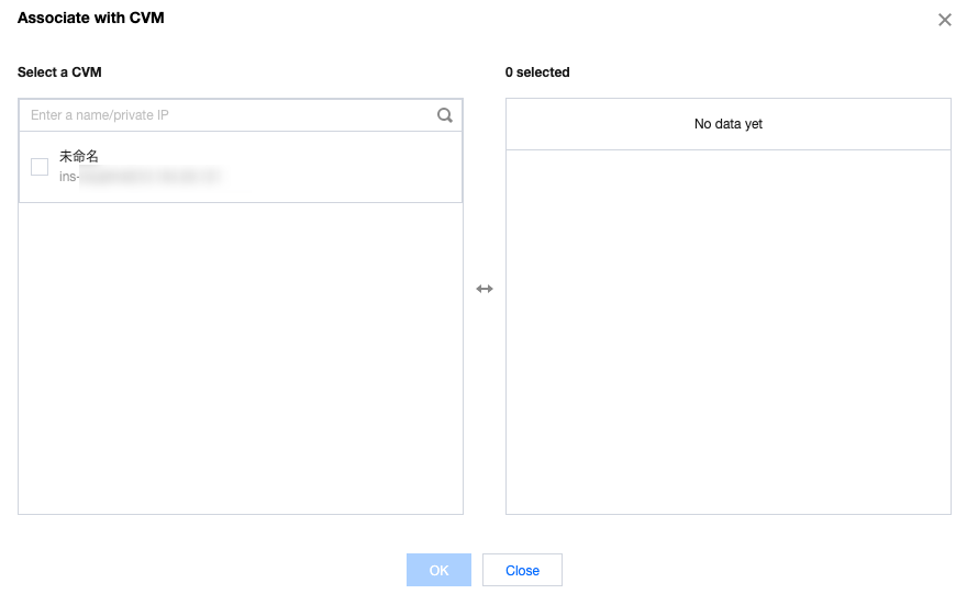 4. Pada jendela pop-up, pilih CVM di jaringan klasik untuk dihubungkan dengan VPC dan klik OK (OKE).