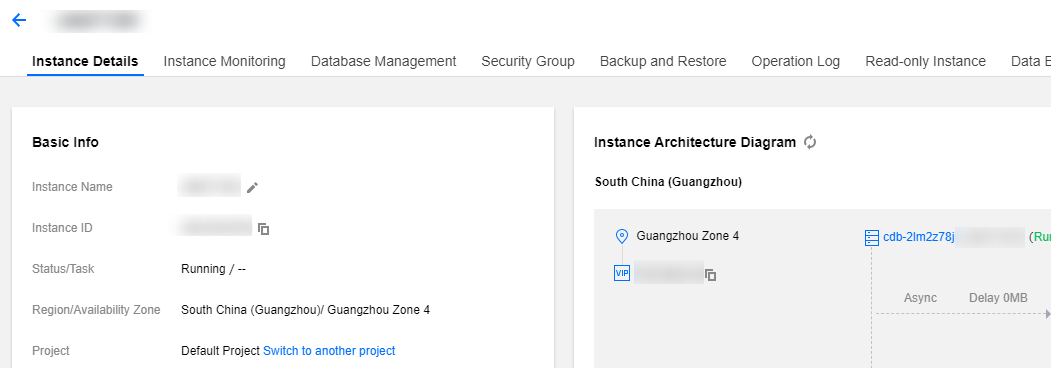 Instans Baca Saja | Pada tab Read-Only Instance (Instans Baca Saja), Anda dapat membuat satu atau beberapa instans baca saja (RO), yang dapat diterapkan pada pemisahan baca/tulis dan skenario aplikasi satu-sumber-beberapa-replika untuk meningkatkan beban baca kapasitas database Anda. Untuk informasi selengkapnya, lihat Membuat Instans Baca Saja. |