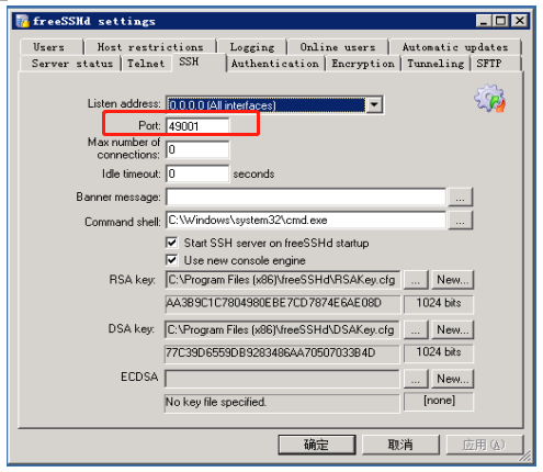 3. Pilih tab SSH (SSH) dan atur port ke 49001 (port default di sini adalah 22, yang harus diubah menjadi 49001).