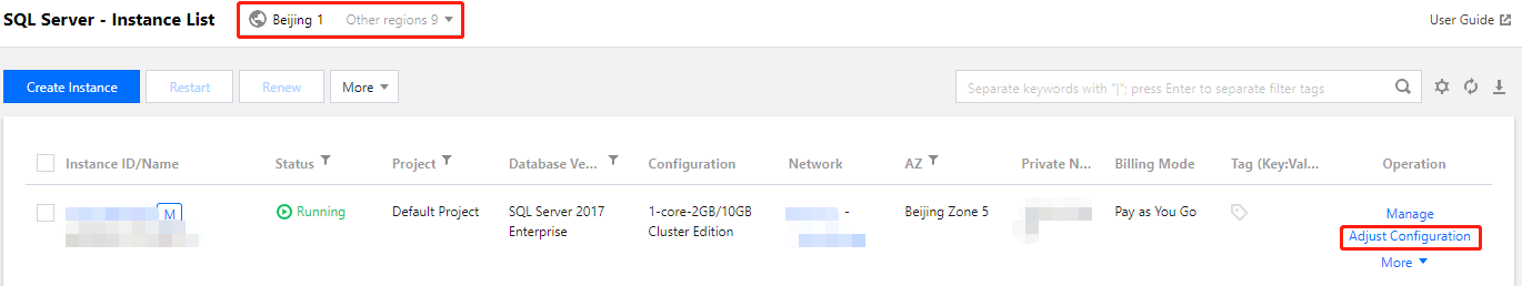 | Peningkatan spesifikasiatauperluasan kapasitas disk | Peningkatan | 1. Spesifikasi instans atau kapasitas disk akan ditingkatkan atau diperluas selama penyesuaian konfigurasi. 2. Migrasi data dan mulai ulang instans tidak akan dilakukan, dan tidak akan terjadi pemutusan sementara. 3. Penyesuaian yang diajukan akan segera berlaku tanpa memengaruhi bisnis. | Penyesuaian yang diajukan akan segera dijalankan. |
