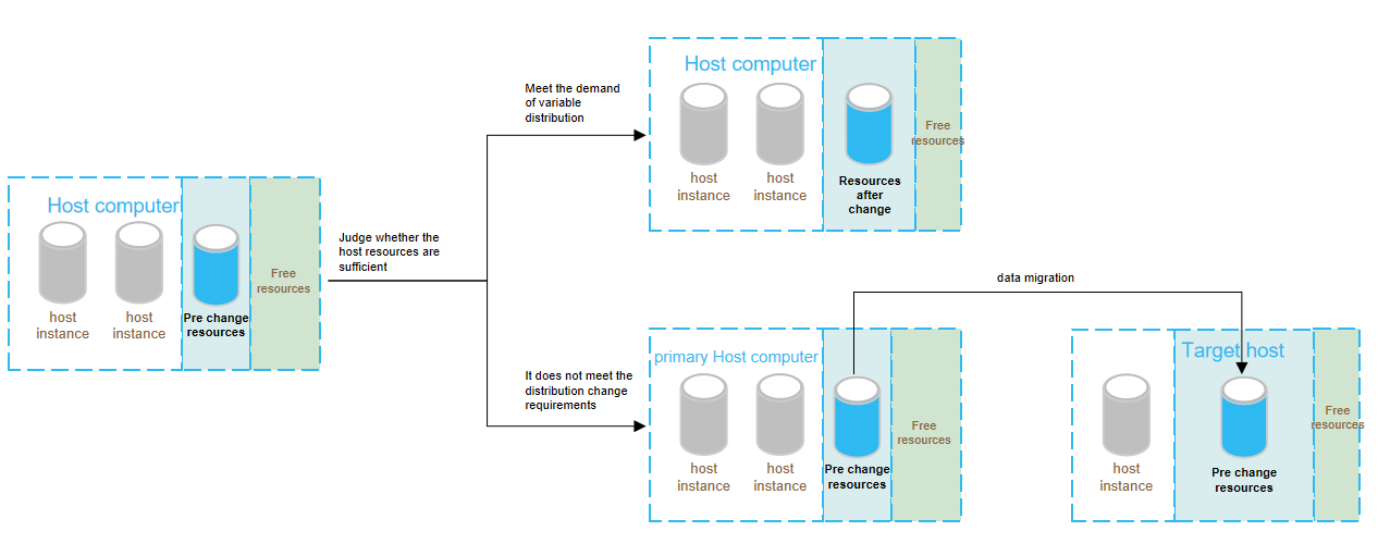 Edisi Ketersediaan Tinggi/Edisi Kluster | Peningkatan spesifikasi + perluasan kapasitas disk | Peningkatan | 1. Spesifikasi instans atau kapasitas disk akan ditingkatkan atau diperluas selama penyesuaian konfigurasi. 2. Migrasi data dan mulai ulang instans tidak akan dilakukan, dan tidak akan terjadi pemutusan sementara. 3. Penyesuaian yang diajukan akan segera berlaku tanpa memengaruhi bisnis. | Penyesuaian yang diajukan akan segera dijalankan. |