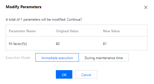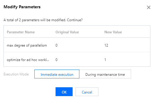 Jika Anda memilih Immediate execution (Eksekusi langsung), tugas modifikasi parameter akan dijalankan dan segera berlaku.