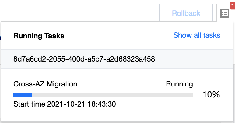 Setelah Anda mengklik Submit (Kirim), data instans akan dimigrasikan ke AZ target di lapisan yang mendasarinya tanpa memengaruhi eksekusi dan akses instans.