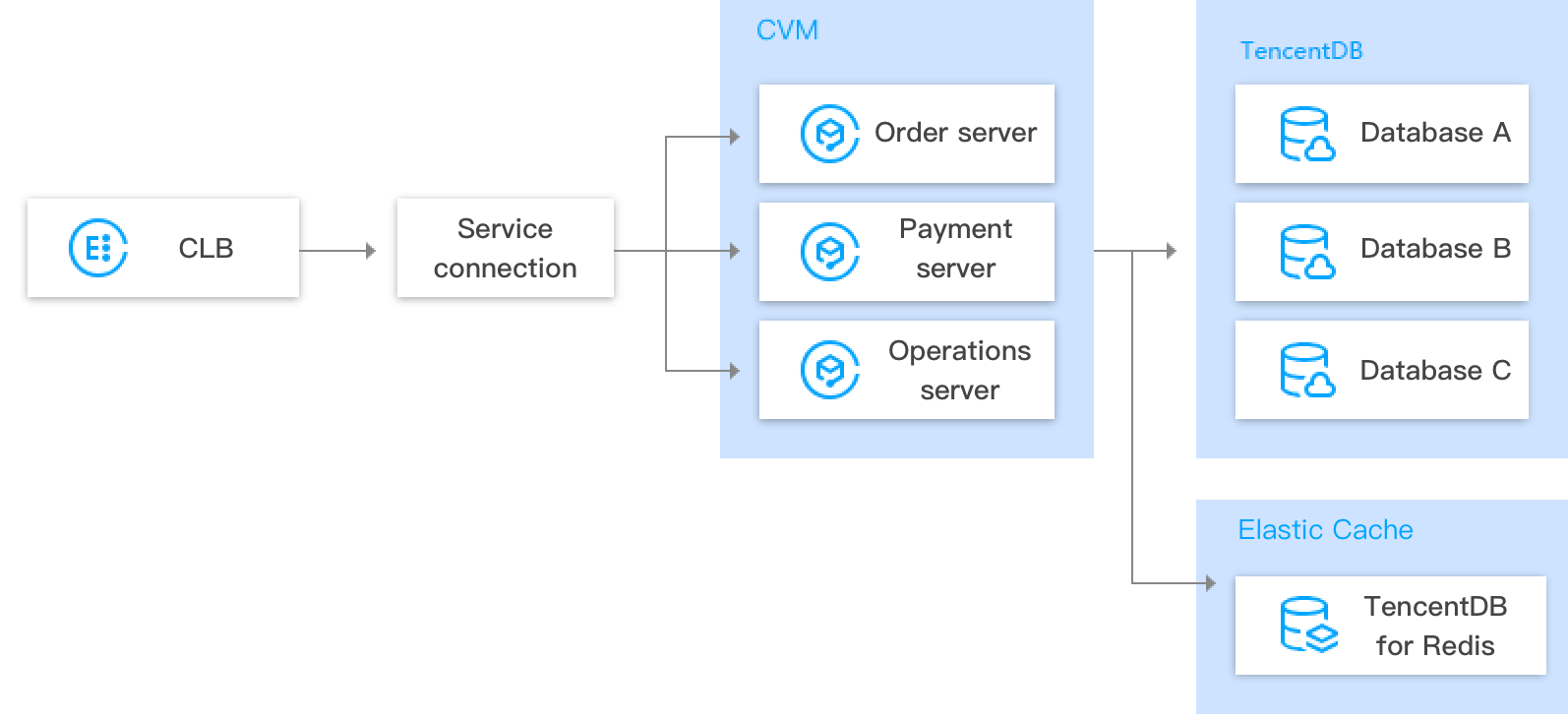 Dalam bisnis internet dan aplikasi, data pengguna dasar dapat di-cache ke TencentDB for Redis untuk meningkatkan kinerja baca/tulis. Selanjutnya, gambar dan sumber daya statis dapat di-cache di sana juga untuk mempercepat pemuatan aplikasi.