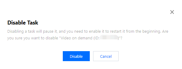 Jika Anda menonaktifkan tugas, tugas akan berhenti. Anda dapat mengeklik Enable (Aktifkan) untuk memulai kembali tugas. Lakukan hal berikut untuk menonaktifkan tugas: 2. Di jendela pop-up, klik Disable (Nonaktifkan).