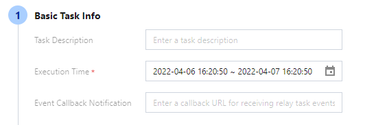 Event Callback Notification (Pemberitahuan Panggilan Balik Peristiwa) | Masukkan URL panggilan balik untuk menerima pemberitahuan peristiwa tugas relai. |