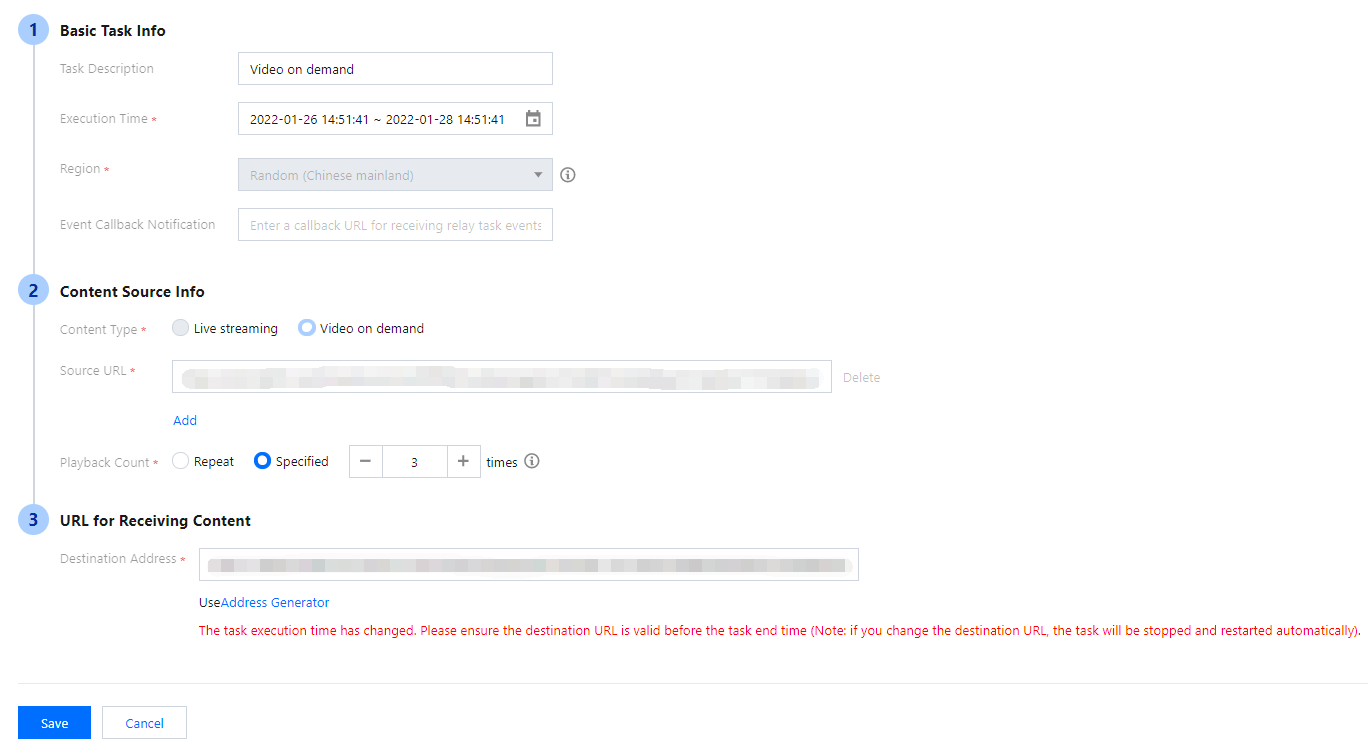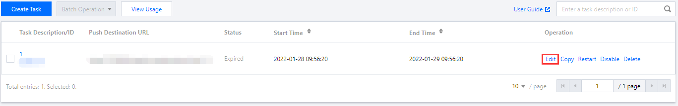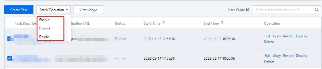 Saat mengubah waktu berakhirnya tugas, pastikan URL tujuan valid hingga tugas berakhir. Memodifikasi URL tujuan akan menyebabkan tugas terhenti dan dimulai ulang.