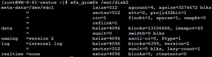 Jalankan perintah berikut untuk memperluas sistem file XFS.
