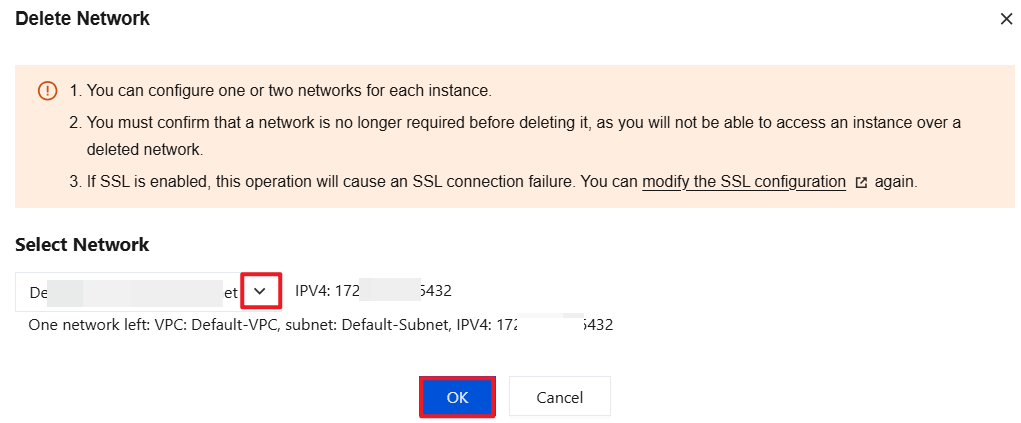 If you want to change the current network of the instance, for example, from the classic network to a VPC or from VPC A to VPC B, you can add and delete a network as detailed above for this need.