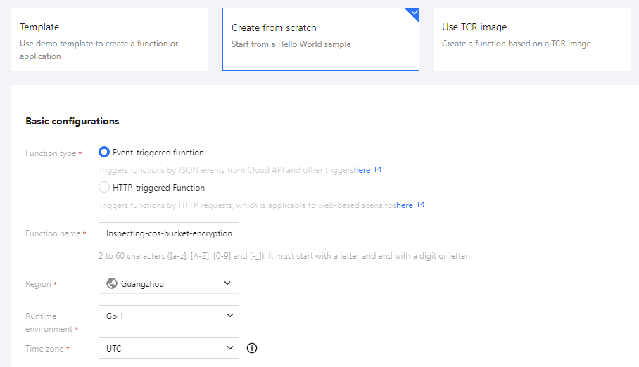 1. Log in to the SCF console, click Function Service in the left sidebar, and go to the function list page. 2. Create SCF. Click New to create SCF. Configure the following options: